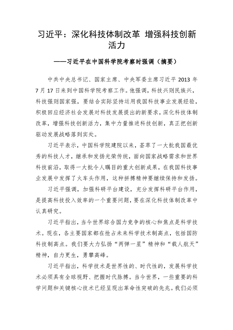 习近平:深化科技体制改革 增强科技创新活力——习近平在中国科研实验室考察时强调