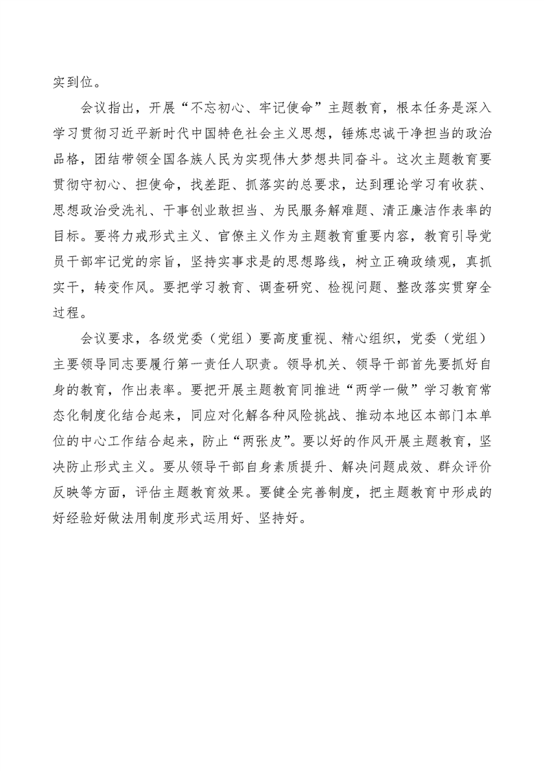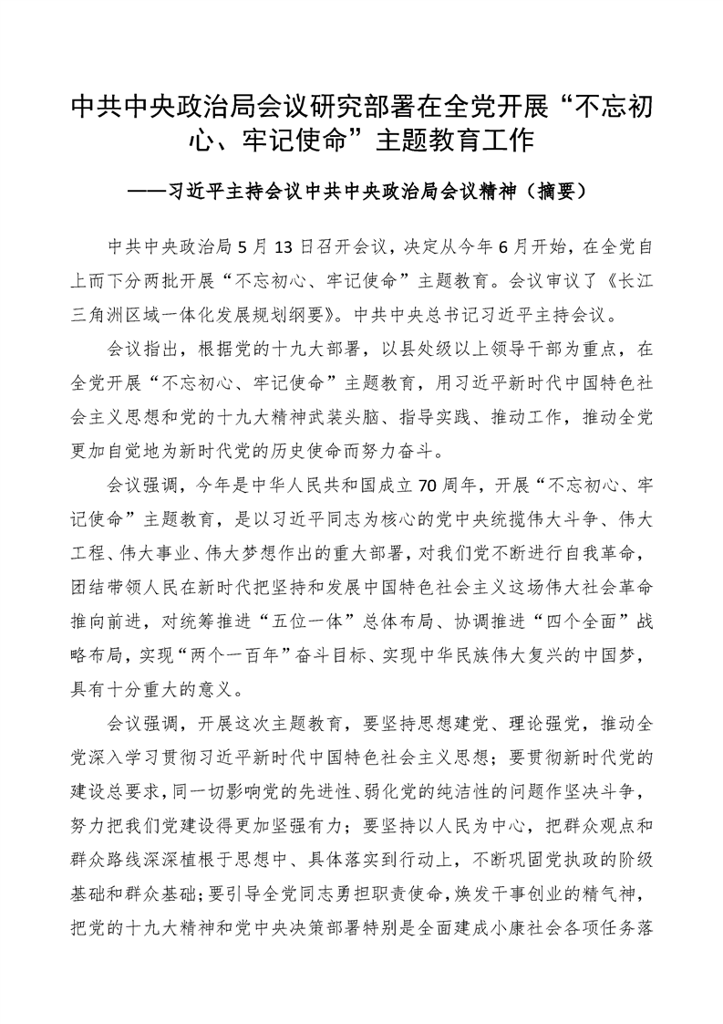 中共中央政治局会议研究部署在全党召开“不忘初心、牢记使命”主题教育工作——习近平主持会议中共中央政治局会议精神